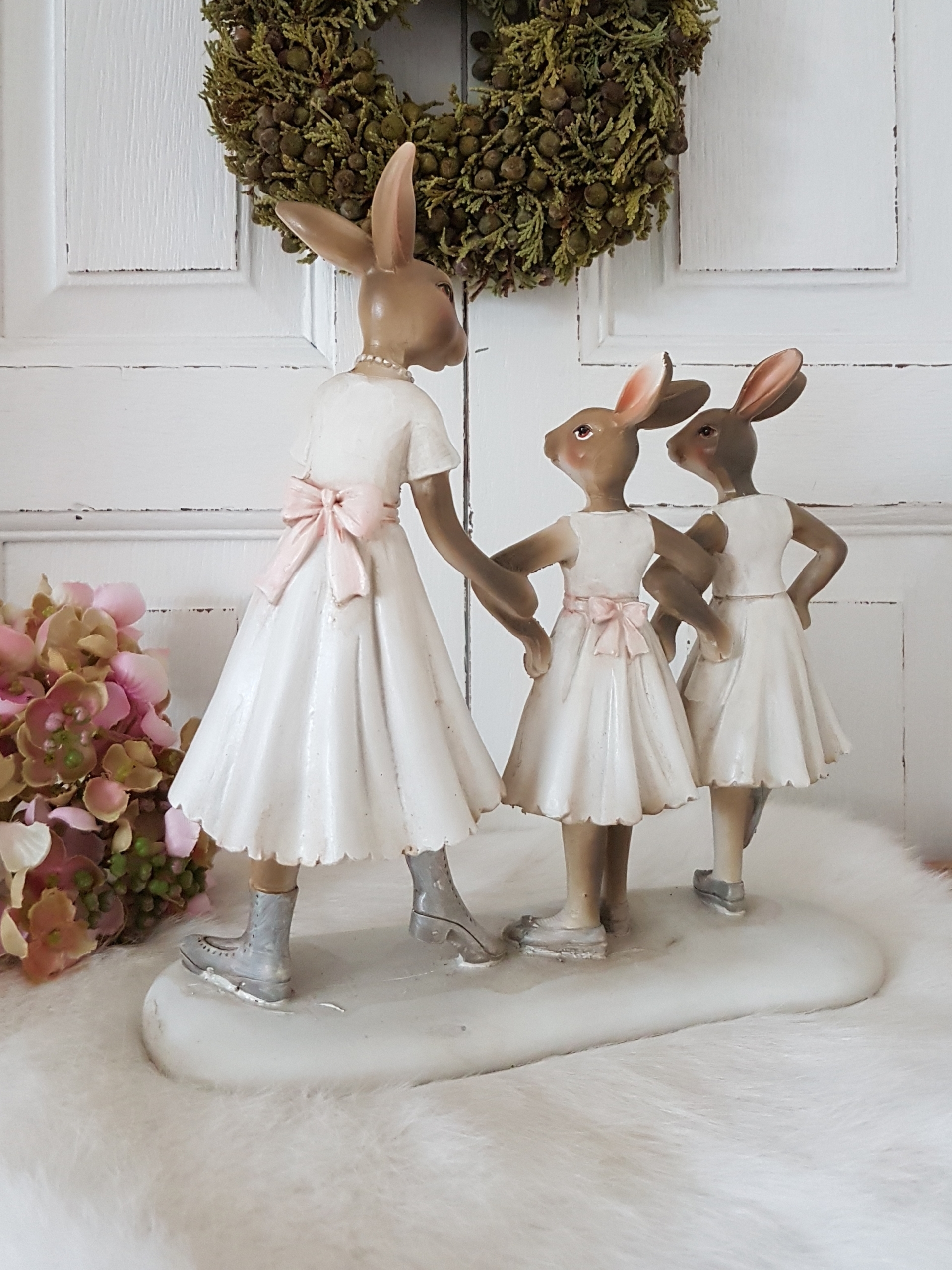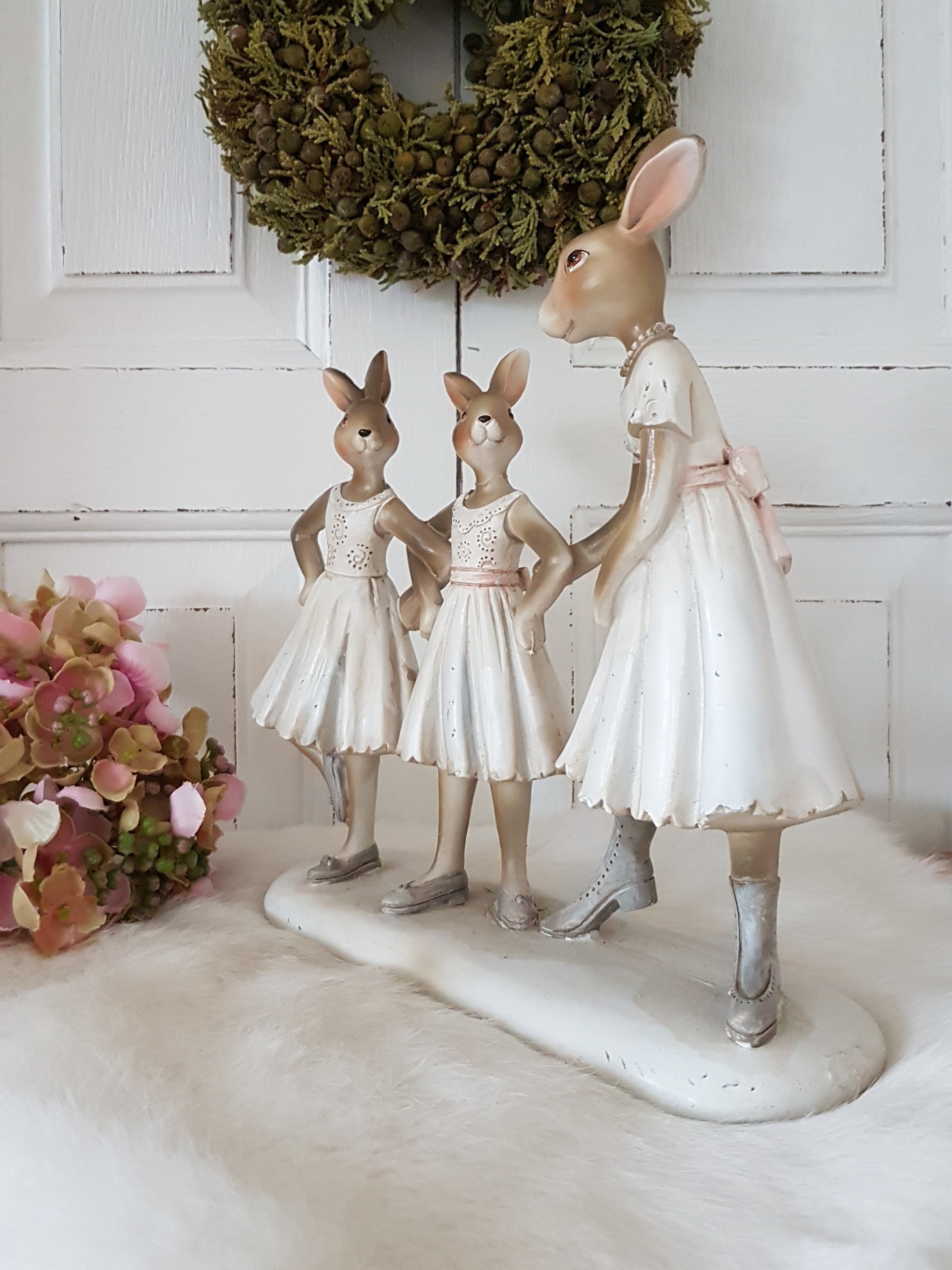 Diese wunderschöne Hasengruppe wurde in Handarbeit hergestellt und sollte in keiner Osterdekoration fehlen.