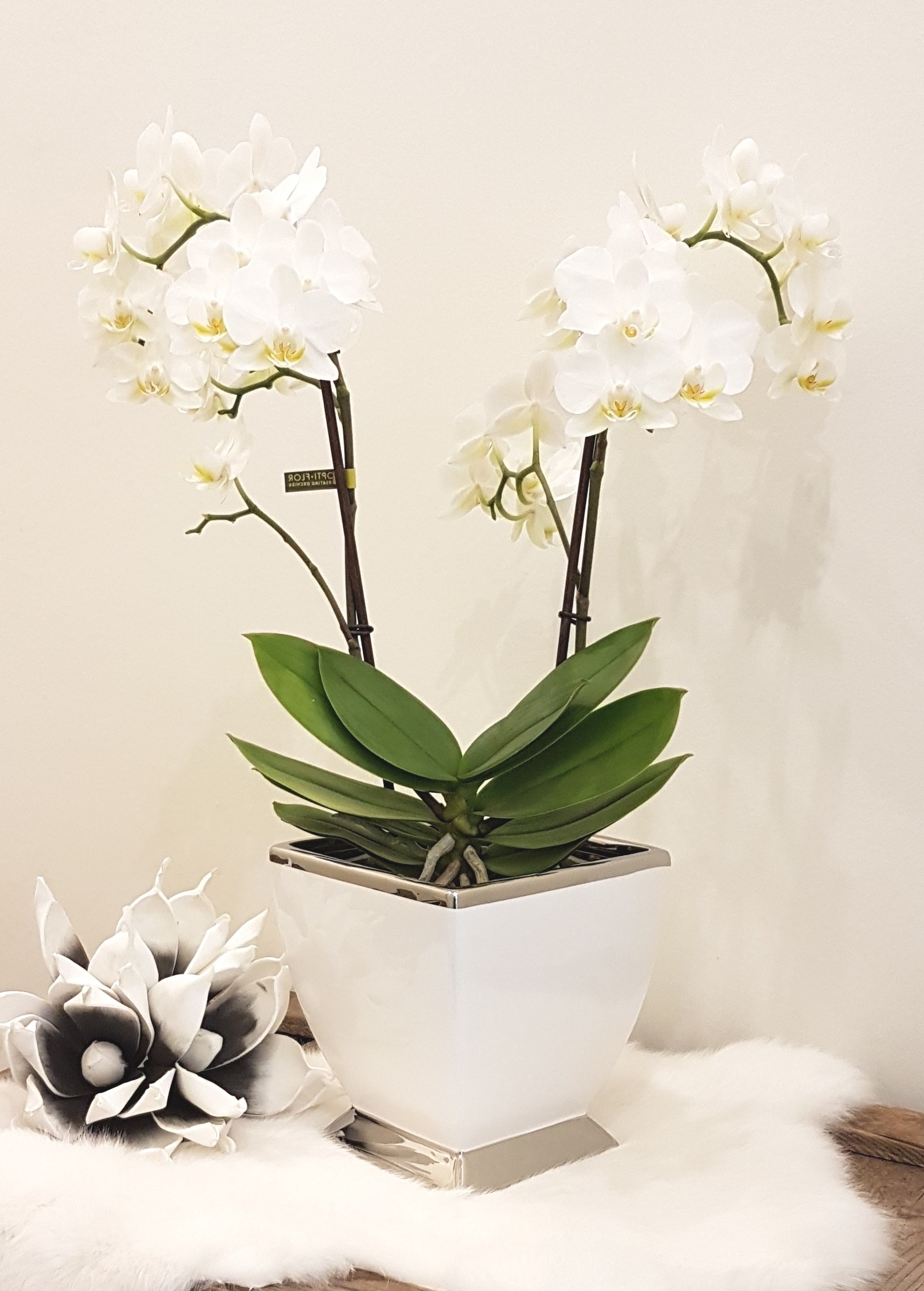 Diese Vase setzt nicht nur Ihre Blumen stilvoll in Szene sondern eignet sich auch wunderbar als Übertopf oder Pflanzgefäß für Orchideen.