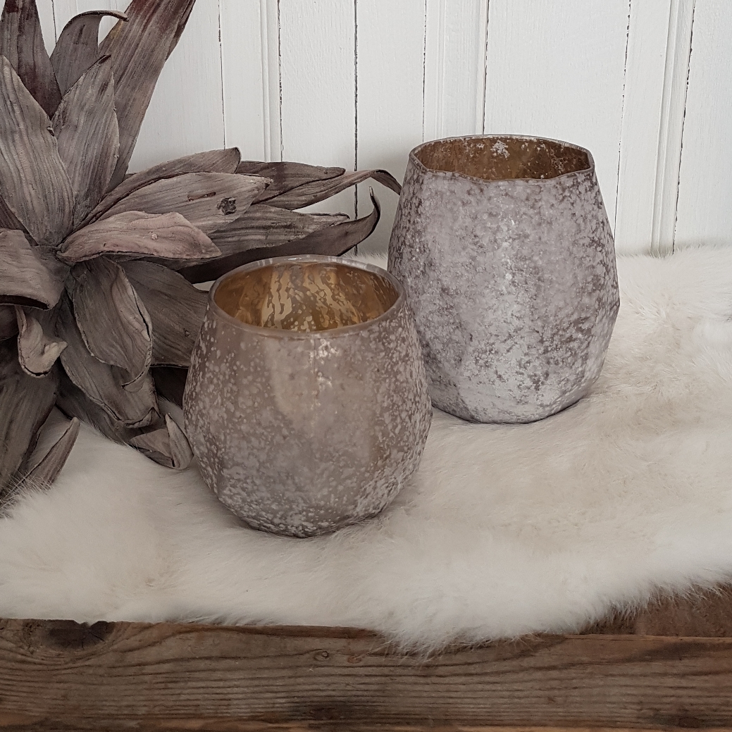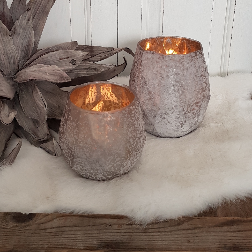 Windlicht „Lissabon“ – Glas lackiert – grau-rosa – 2er-Set