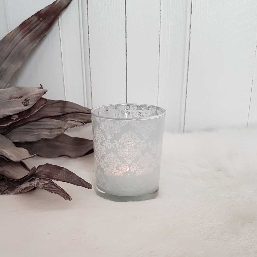 • Windlicht „Ornament“ – grau – Glas lackiert – Höhe 8 cm